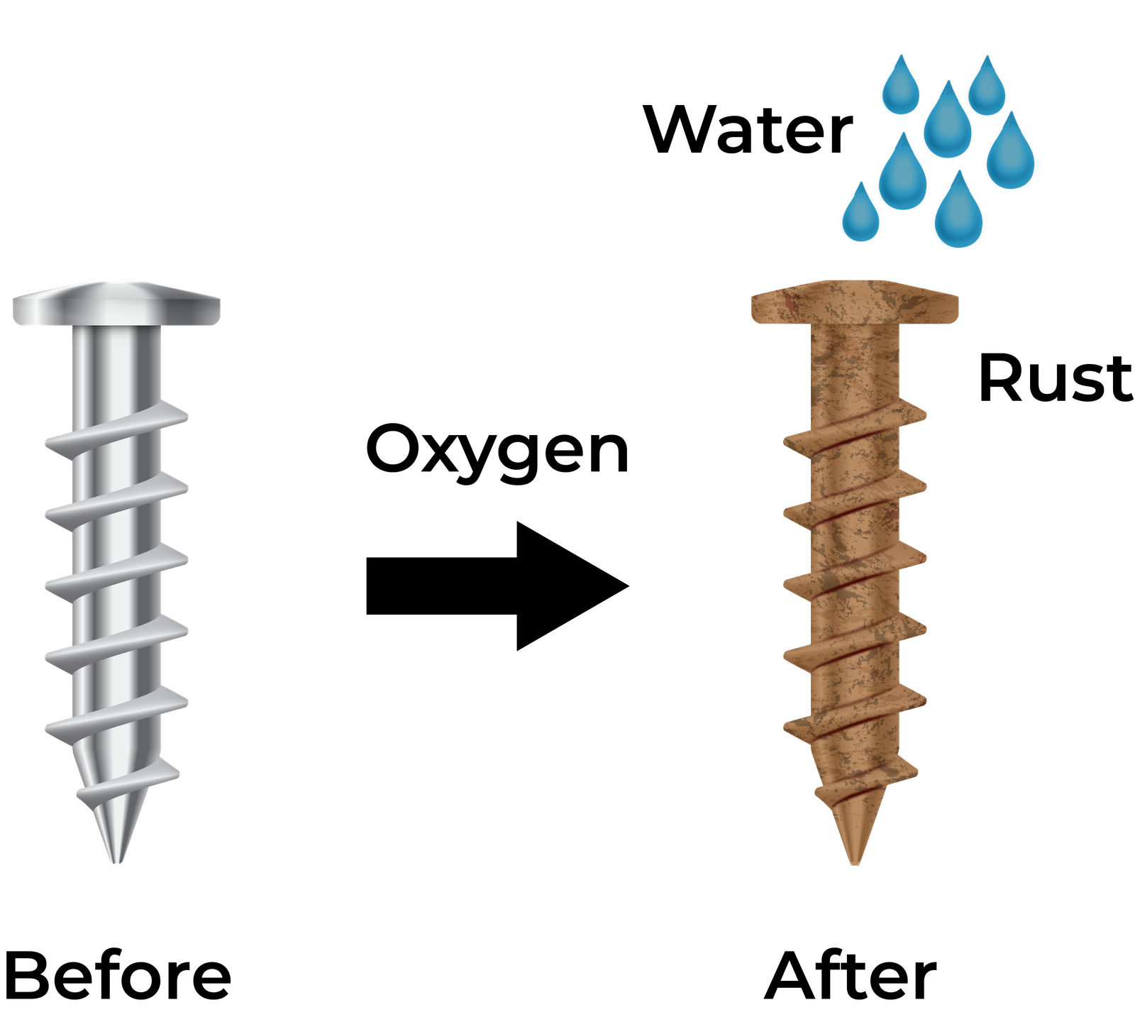 When iron or steel is exposed to oxygen and moisture, it reacts to